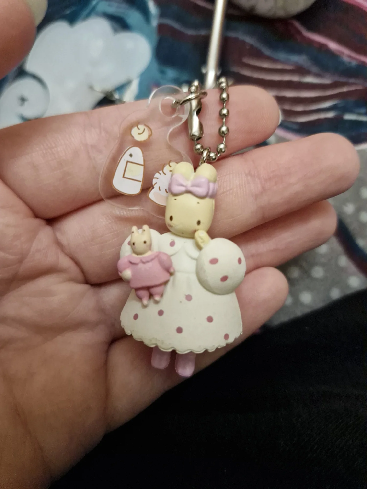 It's a bit strange because my character's skin is yellow-green. I have another keychain from the same collection and the skin color is cream and very cute, so I don't know what to think....