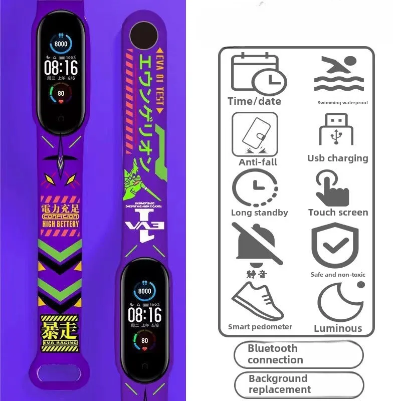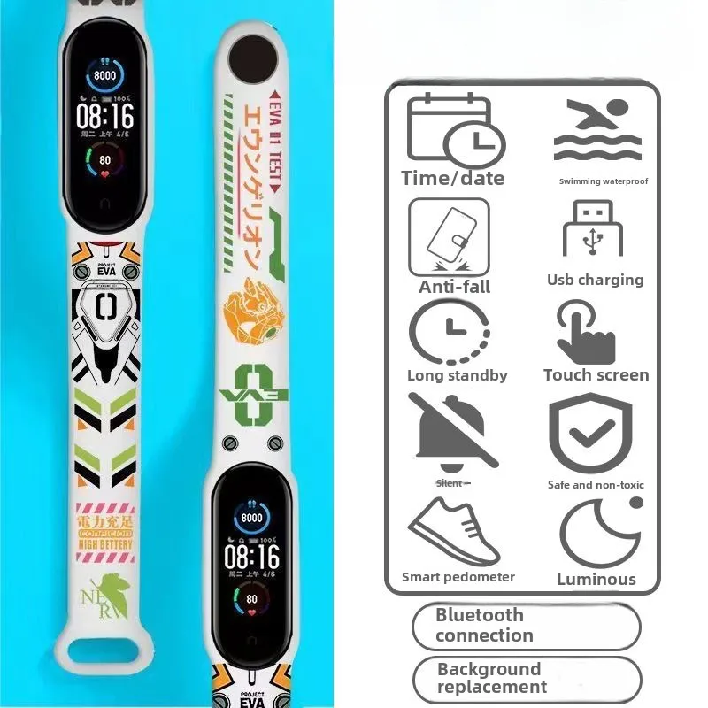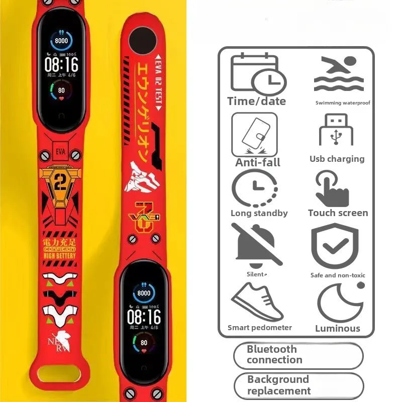 EVANGELION Smartwatch Anime Waterproof Bluetooth Sport Fitness Watch Wristwatches Pedometer Long Standby Multi-function Watches